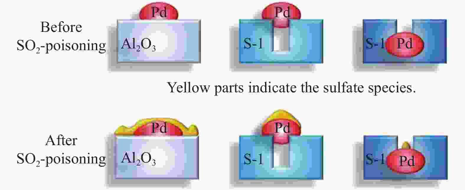 在贵金属催化剂抗无机硫的研究方面,较为常见的活性物种为Pt、Pd。但是两者的抗硫性能却有较大不同。诸多研究表明,Pt的耐硫性要强于Pd[41, 42]。在含SO2的气氛中,Pd会和SO2发生反应形成PdSO4,从而造成催化剂失活[43, 44],但目前关于Pt的硫酸盐的文献报道还极少。