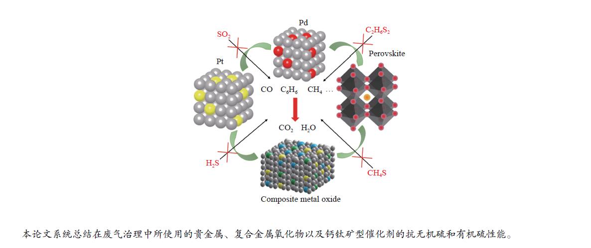然而催化燃烧催化剂在实际工业应用中也面临着诸多挑战,例如在某些特殊场所(制药厂、石油化工行业和污水排放厂)所排放的尾气中通常会含有一些SO2、H2S、硫醇、二氯乙烷等物质[37, 38],对于气体燃料汽车和特种机械内燃机等,其所使用的天然气中都含有一定量的SO2和H2S[39, 40]。这些含硫化合物在催化反应过程中,会和反应物竞争吸附活性位,造成短暂的活性下降,甚至和主活性物种或载体发生反应,造成不可逆的化学失活。因此,如何设计高稳定的催化剂,是工业催化剂必须要解决的问题。
