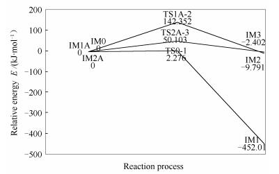 ln(k)/s-1IM0 -572.4485192 TS0-1 -572.4476524 -124.77 -452.010 2.276 28.539 IM1 -572.6206809 IM1A -572.6206558 TS1A-2 -572.4952856 -1526.41 -9.791 142.352 -27.970 IM2 -572.5993533 IM2A -646.7025609 TS2A-3 -646.6834768 -647.04 -2.402 50.103 9.245 IM3 -646.7034749 表 2 反应物、中间体、过渡态及生成物的总能量、过渡态频率、反应能量、反应势垒及反应速率常数