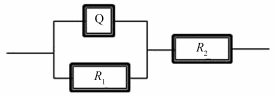 理论上,EIS谱图(Nyquist曲线) 中应包含高频区曲线形成的半圆、低频区曲线形成的半圆和低频区的特征曲线三部分。而图 6中曲线仅有一个半圆,这说明高频区半圆对应的阳极活化损耗较小,EIS谱图中主要反映了电池欧姆阻抗(即Nafion膜、催化层、各部件间接触电阻等) 和阴极电化学阻抗。所以,EIS谱图拟合采用如图 7所示的等效电路图。拟合结果表明,以PtCu/C为阴极催化剂的单电池电化学阻抗(即R1) 为189.0 mΩ,大于Pt/C-JM催化剂(141.2 mΩ);以PtCu/C为阴极催化剂的单电池欧姆阻抗(即R2) 为26.8 mΩ,大于Pt/C-JM催化剂(19.2 mΩ)。单电池的电化学阻抗均比欧姆阻抗大一个数量级,说明制约单电池性能的主要原因依然为阴极的氧还原反应。而以PtCu/C为阴极催化剂的单电池欧姆阻抗和电化学阻抗均高于Pt/C-JM催化剂,这可能是因为所采用的MEA制备工艺是适用于Pt/C-JM催化剂的较优工艺条件,而在喷涂PtCu/C催化剂制备MEA时各工艺条件需要进一步优化。这间接说明了催化剂在溶液中的电化学性能优良不代表单电池性能一定好,制备MEA和装配单电池的整个过程对单电池的性能也起到至关重要的作用。