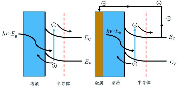 对于给定的半导体和一定的溶液组成,外加电位(电注入)、光照(光注入)均会影响半导体的载流子浓度及半导体界面的能带弯曲程度。