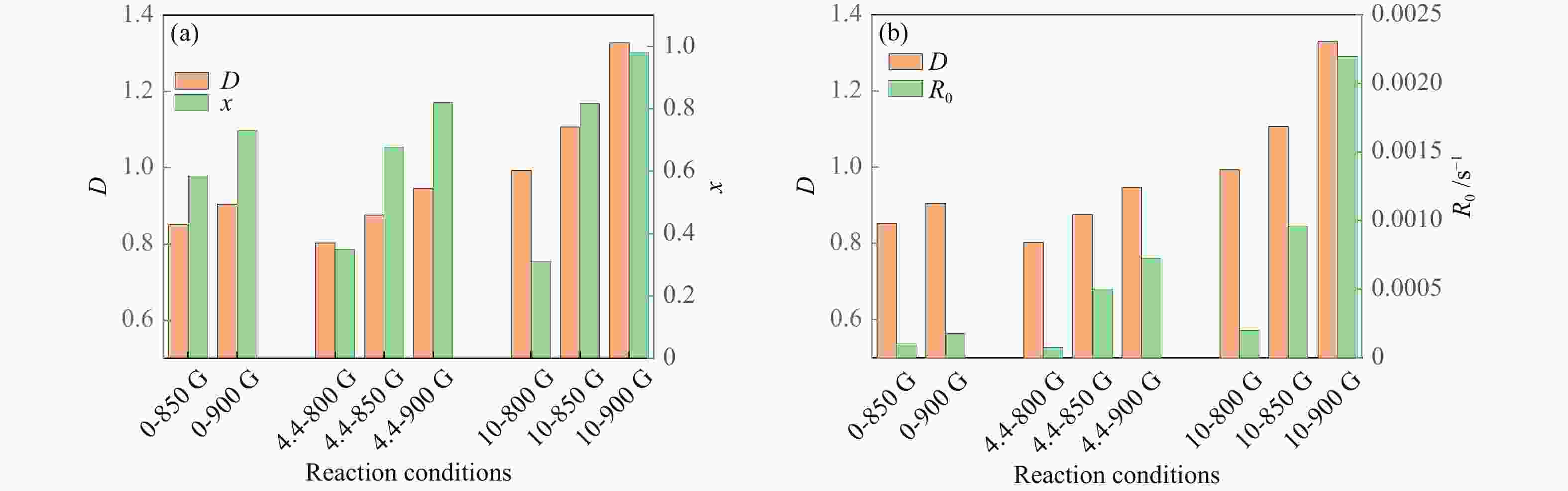 表 1 样品的工业分析和元素分析 Table 1. Proximate and ultimate analyses of tested samples Proximate analysis w/% Ultimate analysis wd/% Mad Ad Vd FCd C H N O* S 1.09 6.60 33.17 60.23 74.13 4.89 0.96 12.51 0.94 *: by difference; ad: air dried basis; d: dry basis 表 2 气化温度和催化剂负载量对分形维数的影响 Table 2. Effects of gasification temperature and catalyst loading on fractal dimension Gasification temperature/℃ Catalyst loading 0.0 4.4% 10.0% 800 0.803 0.993 850 0.852 0.876 1.107 900 0.904 0.947 1.329