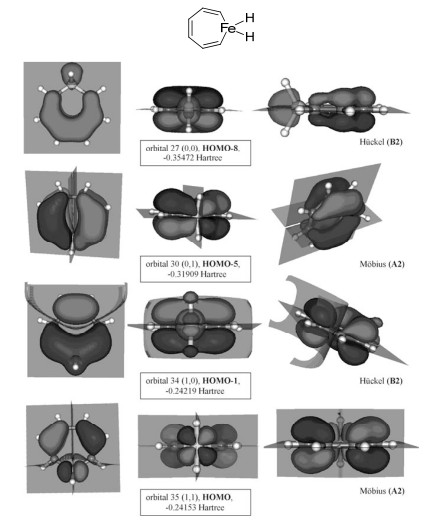 图 23 [Fe(CH)6H2]的结构及其π分子轨道图像