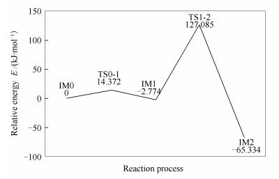 ln(k) /s-1IM0 -647.8643879 TS0-1 -647.6631287 -1381.09 -33.962 528.406 -183.711 IM1 -647.8773231 TS1-2 -647.8250685 -1574.66 -25.383 137.193 -25.889 IM2 -647.8869909 IM2A -646.7025609 TS2A-3 -646.6834768 -647.04 -2.402 50.103 9.245 IM3 -646.7034749 表 3 反应物、中间体、过渡态及生成物的总能量、过渡态频率、反应能量、反应势垒及反应速率常数 Table 3. Total energies of reactants, products, intermediate, and transition states, frequency of transition states, reaction energies, energy barrier, and reaction rate constant Total energies